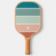 Retro Trendy Stripe Personalised Pickleball Paddle with editable colours and personalisation font. Shown in teal blue, mint green, coral pink, and terracotta with completely editable stripe colours to match your favourite colour vibes.