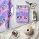 This Retro Tropical Christmas Party Wrapping Paper is festive enough to brighten anyone's holiday outlook! The cartoon design features the type of wildly sophisticated holiday party that is normally only seen in Christmas movies from the 1960s. There is a mid century modern living room filled with partygoers enjoying the swanky, purple decor. A lovely woman in a French maid's uniform is carrying a tray of martinis. She is standing beside a red, cone fireplace with a roaring fire. Three green stockings are hung by the mod chimney with care. In the centre of the room, an attractive couple is lounging in orange egg chairs. The woman is wearing a festive, green dress. The man is wearing a black suit with a red tie. They are each holding a martini. Another couple is getting cosy beneath a dangling, yellow, Sputnik chandelier. The distinguished, grey haired gentleman is wearing a blue suit, light blue shirt and red tie. He is also wearing a Santa hat and holding a martini in each hand, showing the world that his partying days are far from over. His companion is a shapely blonde in a stunning red dress. Mr. Distinguished had better look out because she is holding a sprig of mistletoe in her hand. At the front of the room, there is a kitschy, pink Christmas tree, complete with teal ornaments and a yellow star. Behind this scene, we can see through floor to ceiling glass walls. The outdoor scene features a round, turquoise swimming pool. We can see the purple silhouette of a woman dipping her legs into the water. Between purple, stone walls, there are silhouettes of palm trees decorated with ornaments and Christmas lights. The silhouettes of dancing and talking partygoers are also visible. If there's one thing this proves, it's that, while people who live in glass houses shouldn't throw stones, they should definitely throw parties!