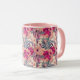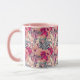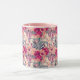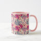 Retro tropical hibiscus wren patterned coffee mug in summer elegant colours with Australian tropical flowers and palm leaf greenery and little wrens, perfect Australian gift for Australian flora lovers and gardening enthusiasts, illustrated by Jo Story of Sketchbook Designs