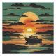Retro Tropical Sunset with Boat and Black Clouds Poster
