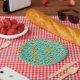Add a splash of mid-century modern Palm Springs everywhere you go with this Retro Turquoise and Orange Trellis pattern paper plate. It was inspired by vintage concrete breeze blocks. The deconstructed take on 1950s architecture will give an instant designer feel to everyday life.