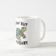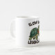A minimalist white mug featuring a retro turtle and legendary slow-life quote.
