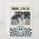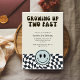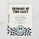 Cool and fun kid's Retro theme 2nd birthday party invitation featuring Cool retro styles with checked pattern and happy faceThe text says "Growing Up Two Fast." Perfect for a boy's birthday party.