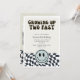 card featuring illustration of a vintage black and white chequered pattern. The text says "growing up two fast."