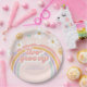 Retro Two Groovy Girl Rainbow 2nd Birthday Paper Plate