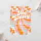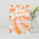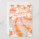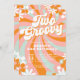 Two Groovy 2nd Birthday Invitation with retro pink, green, orange burst with daisy flower accents and the words Two Groovy in retro hippie style lettering. Fun hippie 70s theme second birthday party invite.