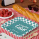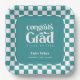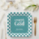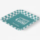Congrats Grad. Retro Type Graduation Party paper plates. Features, retro typography in white on teal background colour and coordinating chequered pattern border.