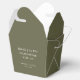 This wedding favor box features clean, minimalist typography paired with an earthy olive green palette. The favor box is personalizable with names and date, making it easy to coordinate with modern wedding celebrations and cohesive stationery suites. Its simple text-forward style works beautifully for receptions, showers, and welcome tables. A timeless detail that adds a polished finishing touch to your wedding day.