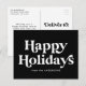 Modern holiday postcard displaying "Happy Holidays" on the front in white, retro-style lettering with a black background or colour of your choice. Personalise the front of the non-photo holiday postcard by adding your name/business name, the year, or other custom text. The back of the postcard features your return address and custom message in festive black text. Designed to coordinate with our Retro Typography holiday card collection.