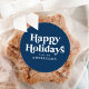 Retro Typography Blue Happy Holidays Classic Round Sticker