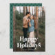 Stylish, trendy holiday card displaying your full-bleed photo with "Happy Holidays" in a white, retro style font overlay. Personalise the front of the holiday photo card by adding your name/business name, the year, or other custom text. The card reverses to feature a second photo and your custom message with a green & white semicircle patterned background.