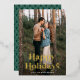 Stylish, trendy holiday card displaying your full-bleed photo with "Happy Holidays" in retro gold foil lettering. Personalise the front of the gold foil holiday photo card by adding your name/business name, the year, or other custom text. The back of the card features a green & white semicircle pattern.