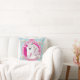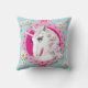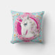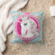 Retro Unicorns and Daisies Pattern on Blue Cushion