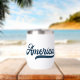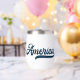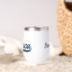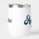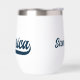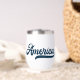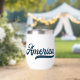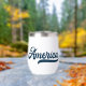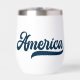 Celebrate America with this patriotic wine tumbler that features the word 'America' in a retro navy-blue graphic script on one side and your name on the other. Perfect for Memorial Day, July 4th, summer fun days or year round vintage Americana nostalgia.