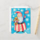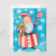 This seasonal post card features a beautiful vintage image of a patriotic USA Santa Claus who is dressed in a red, white, and blue robe. He is holding a Stars and Stripes USA flag in one hand, and a teddy bear with a red bow in the other. Behind him is a pretty blue star spangled sky. Cute! The back of the card has plenty of room for your custom message. For hundreds of vintage and contemporary Christmas images on a variety of products, check out the "Christmas" section in our store.