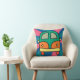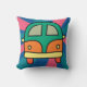 Bright and fun throw pillow design featuring a retro van in vibrant colours on a psychedelic background. Perfect for adding a touch of nostalgia and hippie vibes to any space.