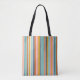 Retro vertical orange blue and yellow pink stripes tote bag