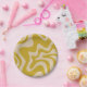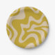 Retro Vibe Liquid Swirl Pattern in Mustard Yellow Paper Plate