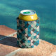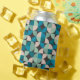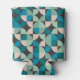 This mid-century modern pattern features turquoise and green geometric shapes.