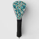 This mid-century modern pattern features turquoise and green geometric shapes.