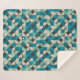 This mid-century modern pattern features turquoise and green geometric shapes.