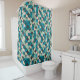 This mid-century modern pattern features turquoise and green geometric shapes.