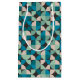This mid-century modern pattern features turquoise and green geometric shapes.