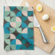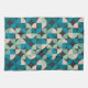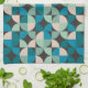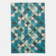This mid-century modern pattern features turquoise and green geometric shapes.