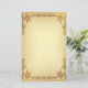 A beautiful design with a beige/brown coloured background that resembles aged parchment paper with classic scrolls top and bottom and decorative corner embellishments for an elegant and formal old world, vintage style look. This design also comes on many other products to suit all your wedding set needs.