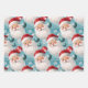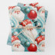 This vintage Christmas wrapping paper features a playful pattern of Santa Claus faces and colourful ornaments on a teal background. The Santa faces have jolly expressions and are saying "Hi!". The ornaments are a mix of red and green, adding to the festive cheer. The paper has a retro, nostalgic feel, perfect for wrapping holiday gifts.