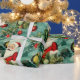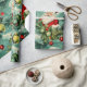 The vintage Christmas wrapping paper exudes a timeless charm with its festive design. A serene snowy background serves as the canvas, creating a wintry atmosphere that instantly evokes the magic of the holiday season. The paper is adorned with a delightful illustration of Santa Claus, his rosy cheeks and white beard capturing the essence of merriment. Santa is depicted in his traditional red suit, filled with intricate details that showcase the craftsmanship of the vintage design. He is surrounded by vibrant ornaments and Christmas greenery.