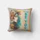 Retro Vintage Flower Power Throw Pillow. A sofa cushion with a female wearing flowers in her hair, the text says "Always be you".