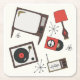 Retro, vintage household items, such as : televisions, records, record players, radios, & lamps on paper coasters. Fun for a retirement party or any occasion.