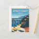 Experience the scenic beauty of the Amalfi Coast with this captivating retro travel-themed postcard. Capturing dramatic cliffs and sparkling Mediterranean views in classic retro style, this piece is a timeless tribute to Italy's coastal charm.