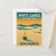 Experience the surreal beauty of the Southwest with this vintage travel-inspired postcard featuring New Mexico's White Sands National Park. Showcasing pristine white gypsum dunes under a clear desert sky, it captures the otherworldly charm of this unique landscape. Perfect for adventurers, nature lovers, and fans of retro travel aesthetics.