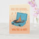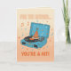 Celebrate their special day with a spin! This retro-themed birthday card features a classic blue suitcase-style turntable with a festive party hat riding the vinyl record. Surrounded by colorful confetti and music notes on a warm, vintage-textured background, the playful pun "For the record... you're a hit!" makes it the perfect greeting for any music enthusiast or vinyl collector.