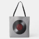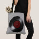 Big image of a vinyl record, with your own name at the back of the music_tote