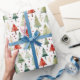 Retro Watercolor Christmas Trees Christmas Wrapping Paper