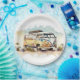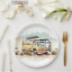 Retro Watercolor Hippie Bus With Flowers Paper Plate