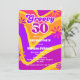 Retro Wave Daisies Groovy 50th Orange Birthday Invitation