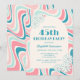 Retro flower with arch frame on pink and green wavy lines background birthday invitation.