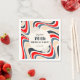Retro Wave Flower Grey Red Birthday Napkin