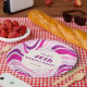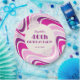 Retro flower with round frame on purple and pink wavy lines background birthday paper plate.