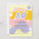 Retro Wave Groovy Flower Hello 50th Birthday Invitation