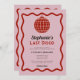 The Retro Wave Pink and Red Last Disco Bachelorette Weekend invite is a vibrant and energetic representation of a nostalgic era. Set against a soft, light pink backdrop, the invitation is framed by a striking red wave, evoking a sense of dynamic movement and excitement. The focal point, a radiant red disco ball situated at the top, captures the essence of a lively disco atmosphere, setting the tone for a memorable celebration.