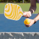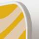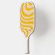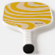 This modern pickleball paddle design features a retro yellow and white wave background, with your text in bold white text for a look that is simple and stylish, yet professional. Shown with a personalised name that can be changed to monogram, initial or a quote.