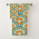 Retro Waves and Flowers Aqua, Teal, Orange Bath Towel Set