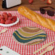 Retro Waves Abstract Pattern Rust Blush Mustard Blue. Cool vintage psychedelic trippy boho aesthetic. 60s 70s contemporary modern vibe. In warm earth tones. By Kierkegaard Design Studio.