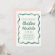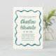 Retro Wavy Blue and Green Handwriting Wedding Invitation