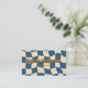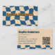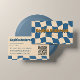 Retro Wavy Checkerboard Funky Blue Beige Business Card